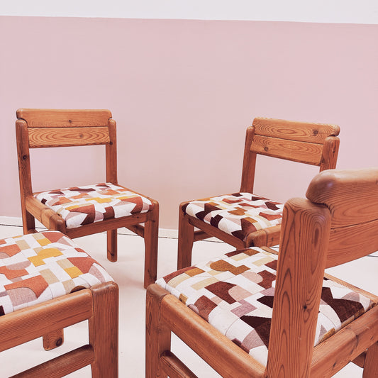 Set of 4 upholstered pine wood chairs