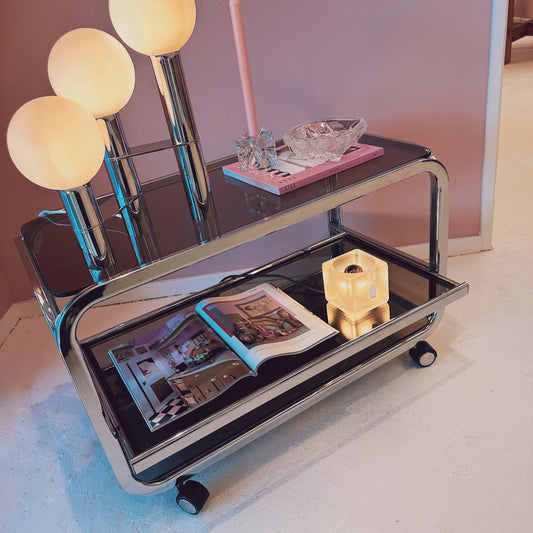 Vintage Huwa trolley – chrome & smoked Parsol mirror glass
