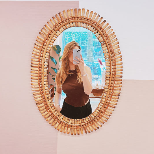 Sold out1960’s oval shaped rattan mirror