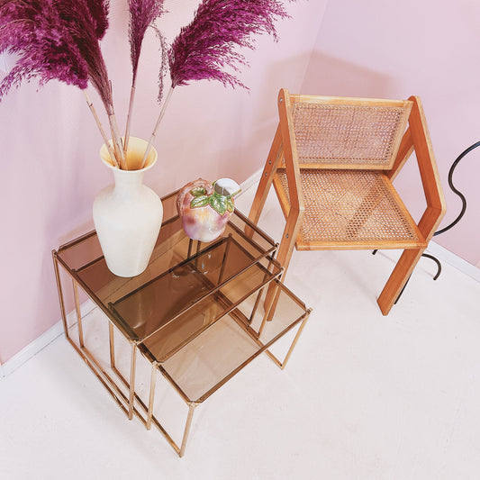 UitverkochtBijzettafels - Messing en rookglas.