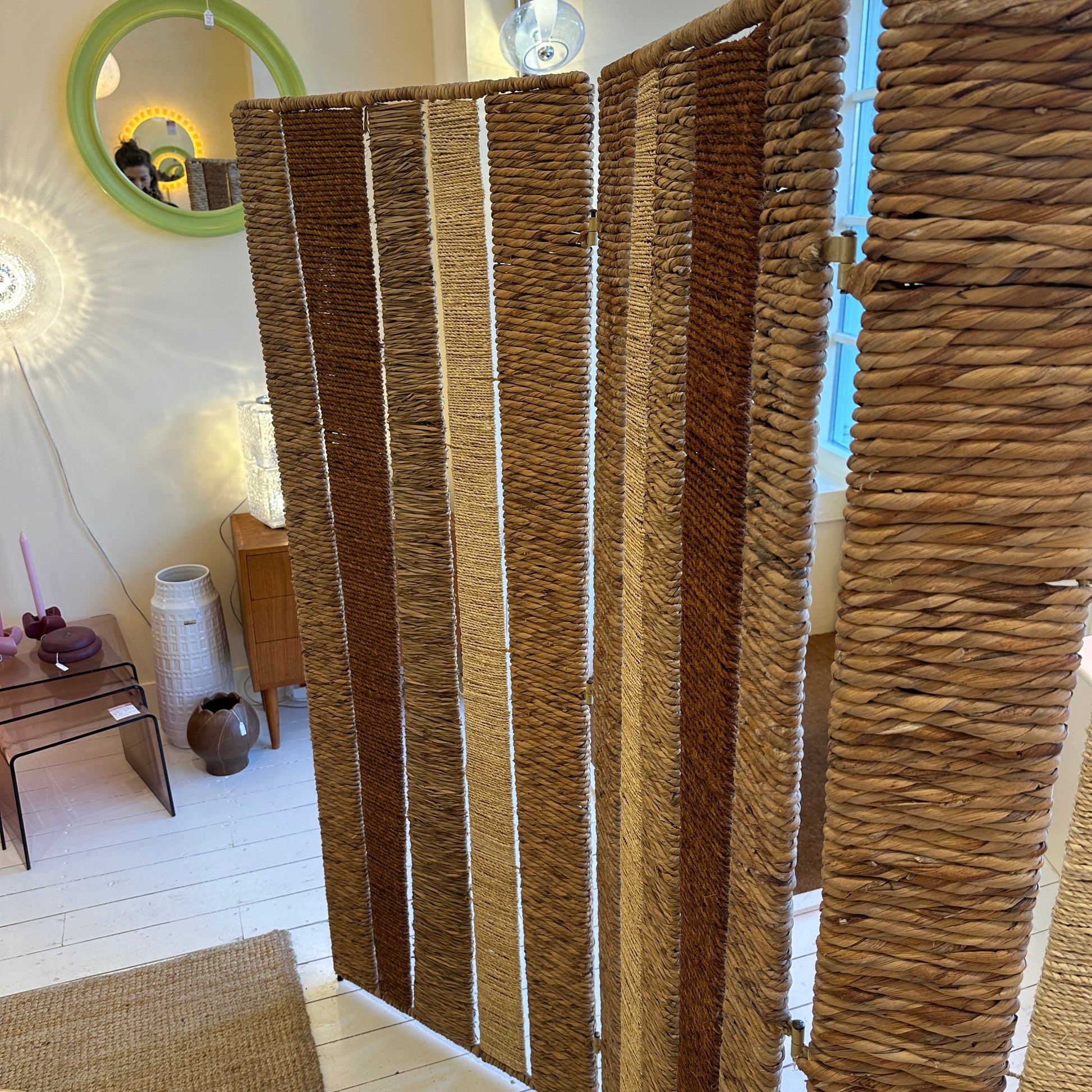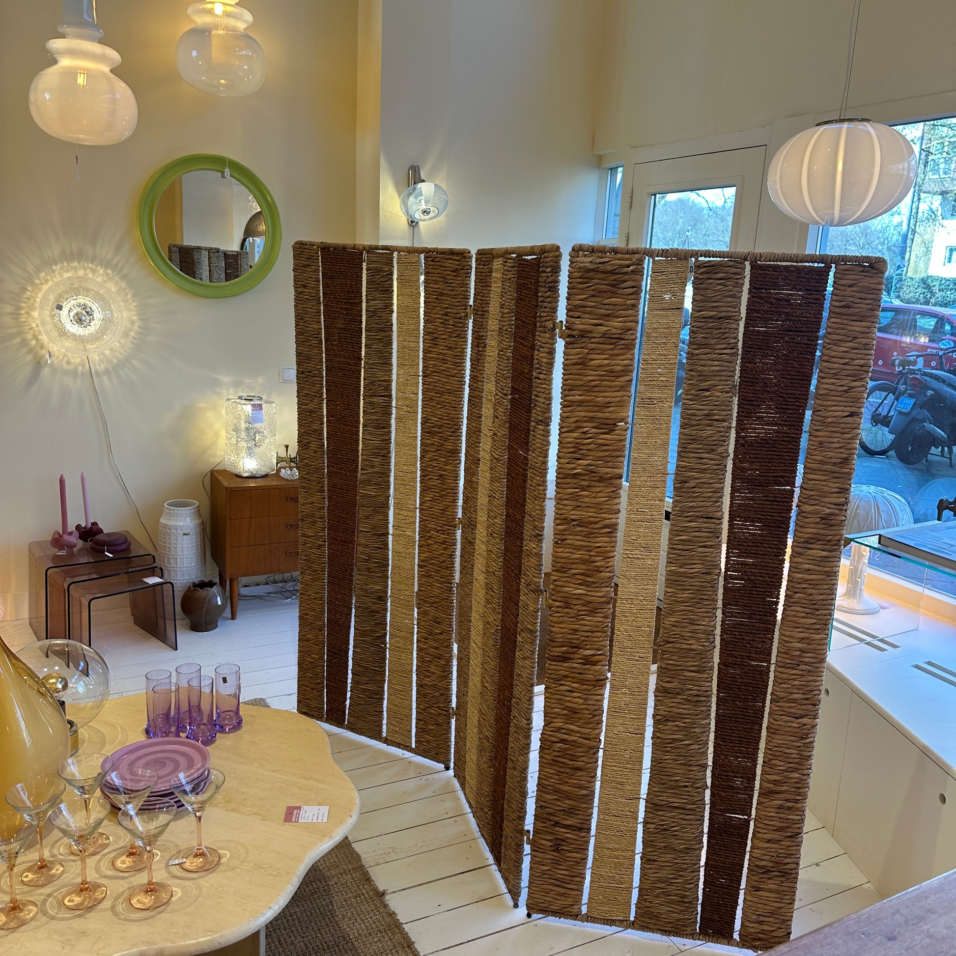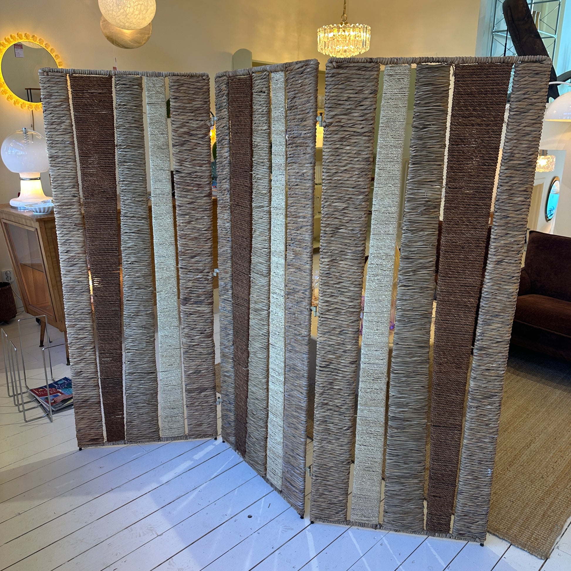 Kamerscherm van riet, rotan en touw