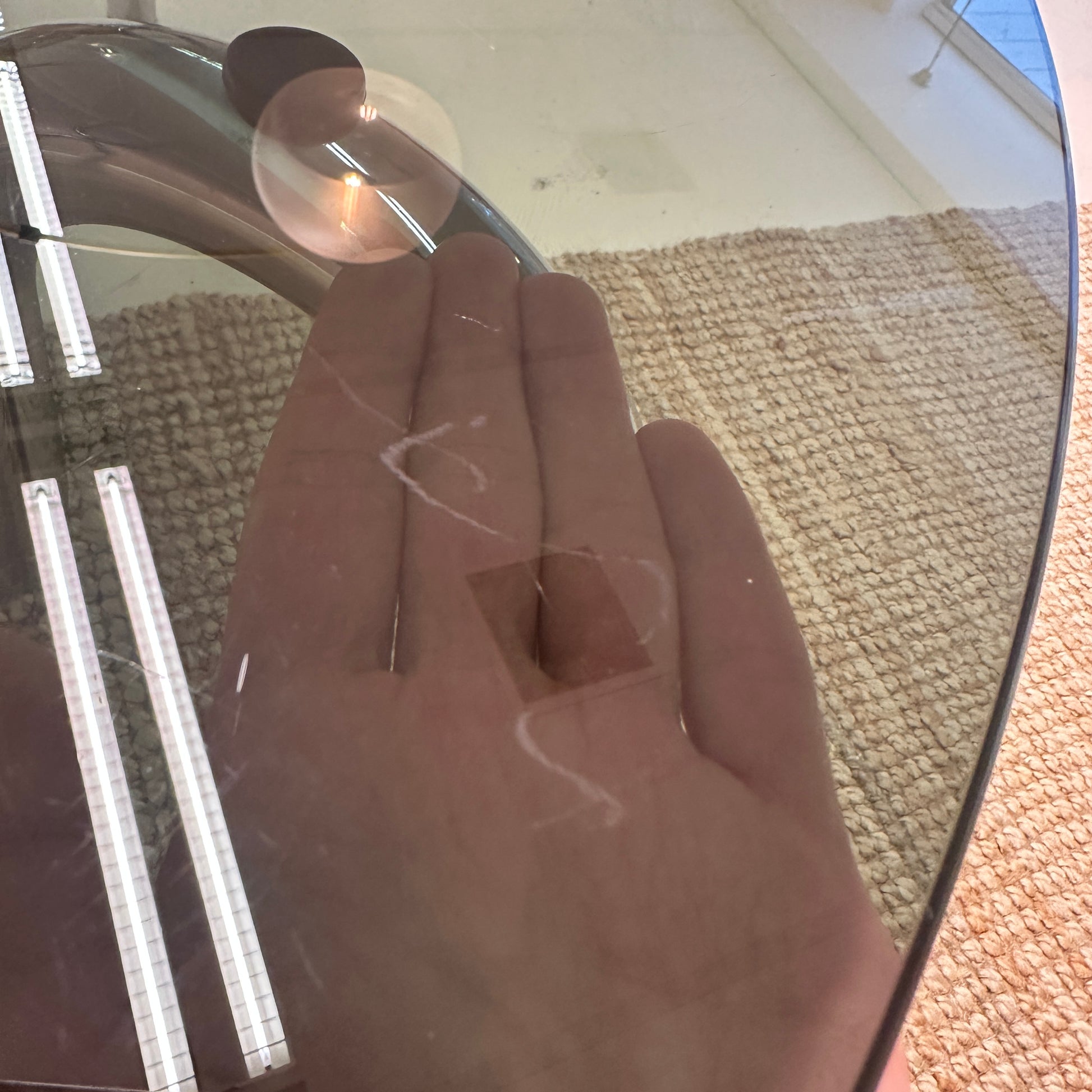 The glass top rests loosely on the chrome base, so it’s easy to move or clean when needed.