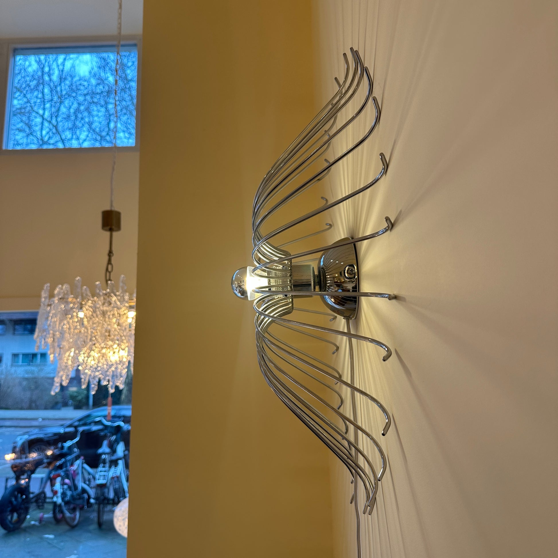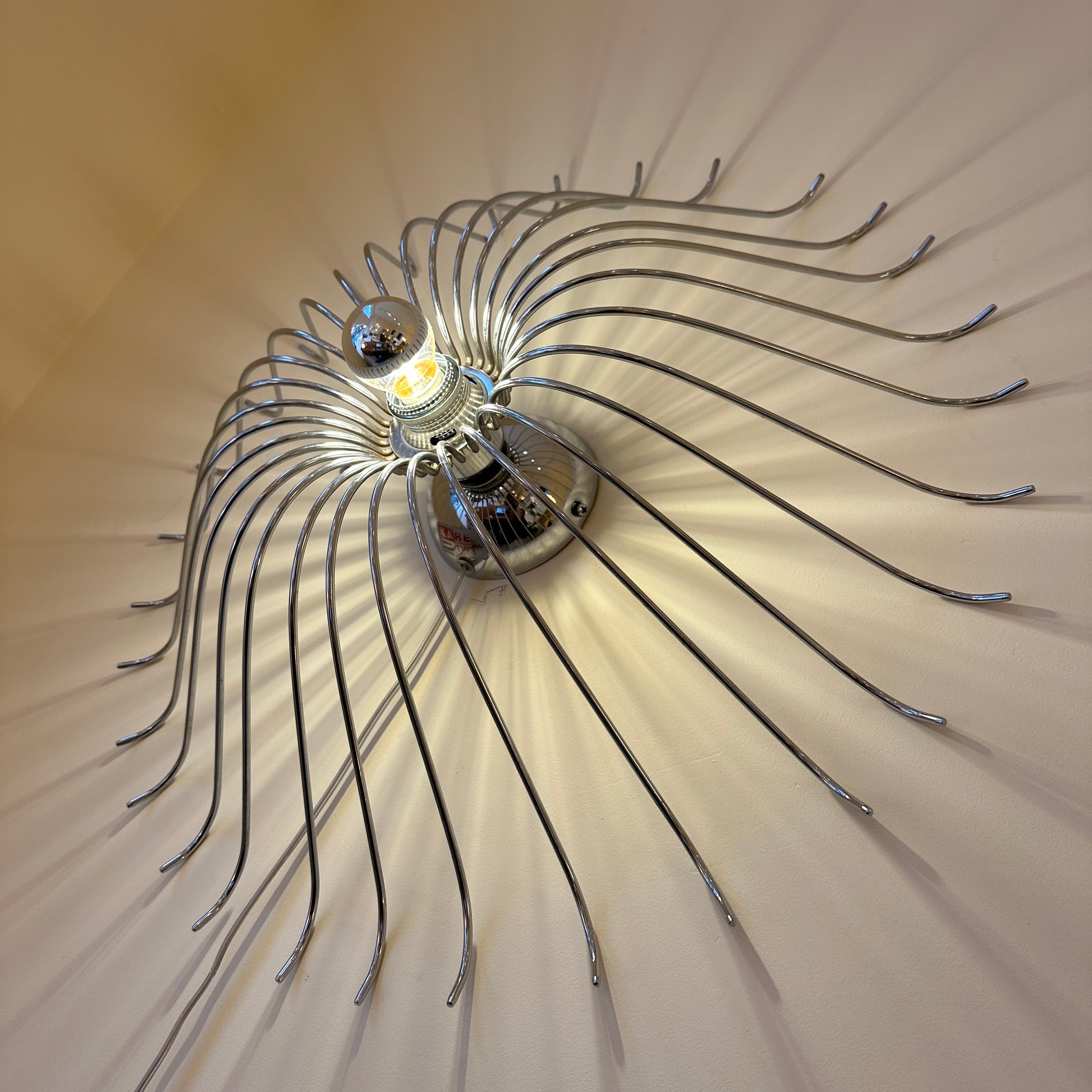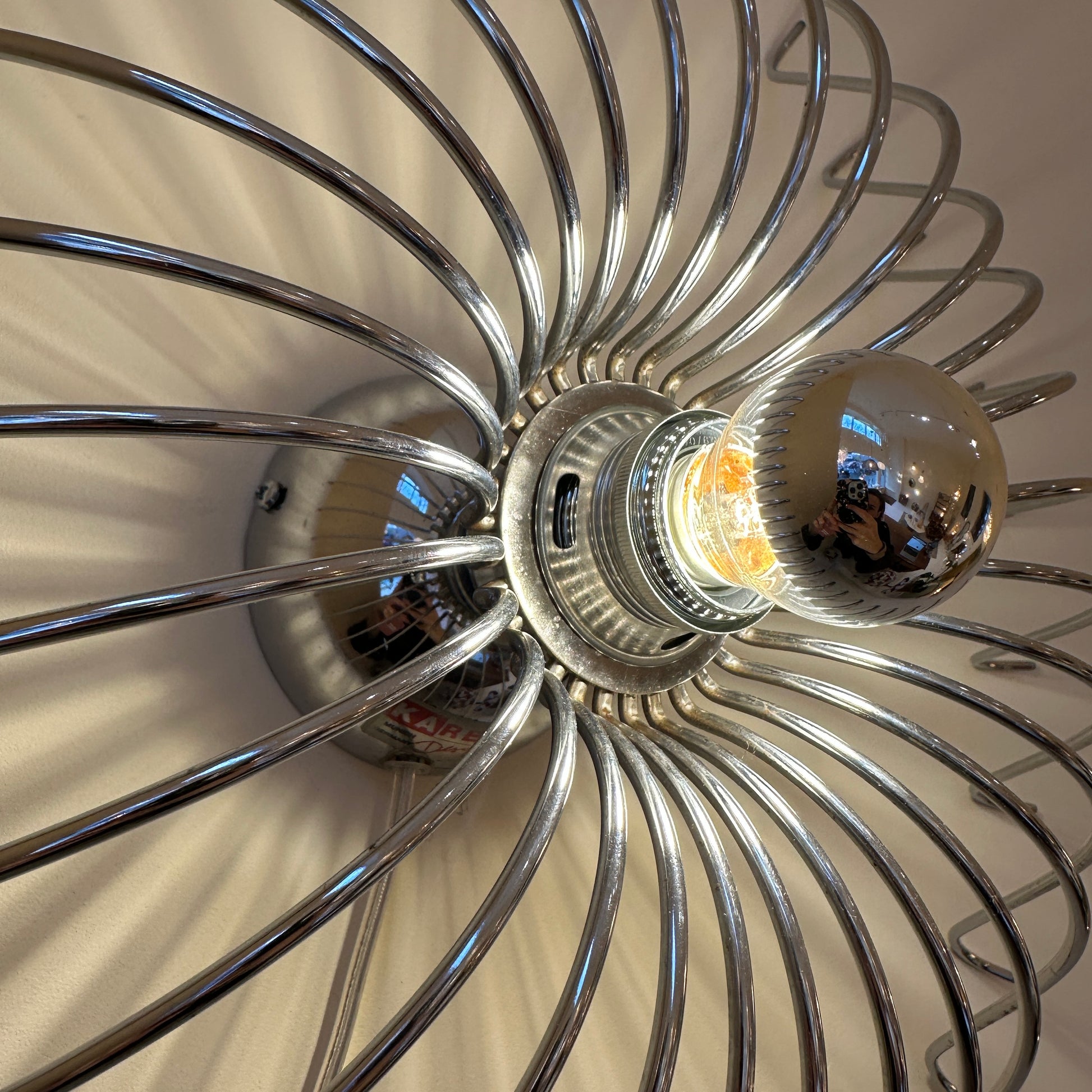 We are in love with this stunning light. Can be used as wall light or ceiling light. The shadows this KARE Design light gives are amazing. It's an metal light with a chrome coating. Perfect for a minimalistic, clean or space age style home.